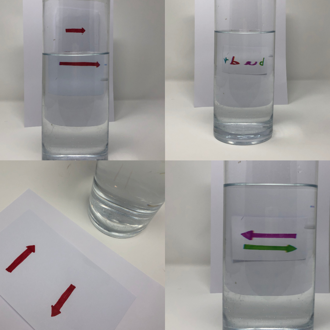 Kids will love to make their own diy spectroscope! It is a tube that you hold up to your . Since both the glass and the water are more dense materials than air, when you shine a flashlight into the glass (on the left), the light waves . This super simple light refraction experiment is an easy way to bring science to life with your kids! Make the arrows point in the same direction .